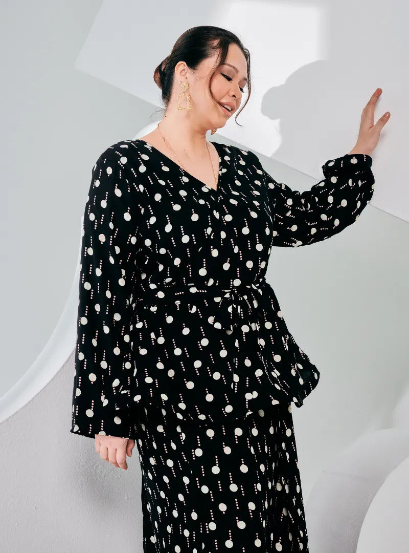 Curva Fabulous - Polka Dotted Peplum Wrap Top