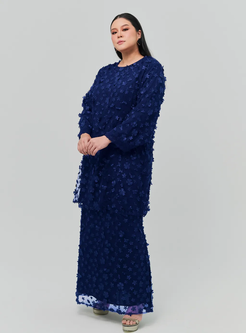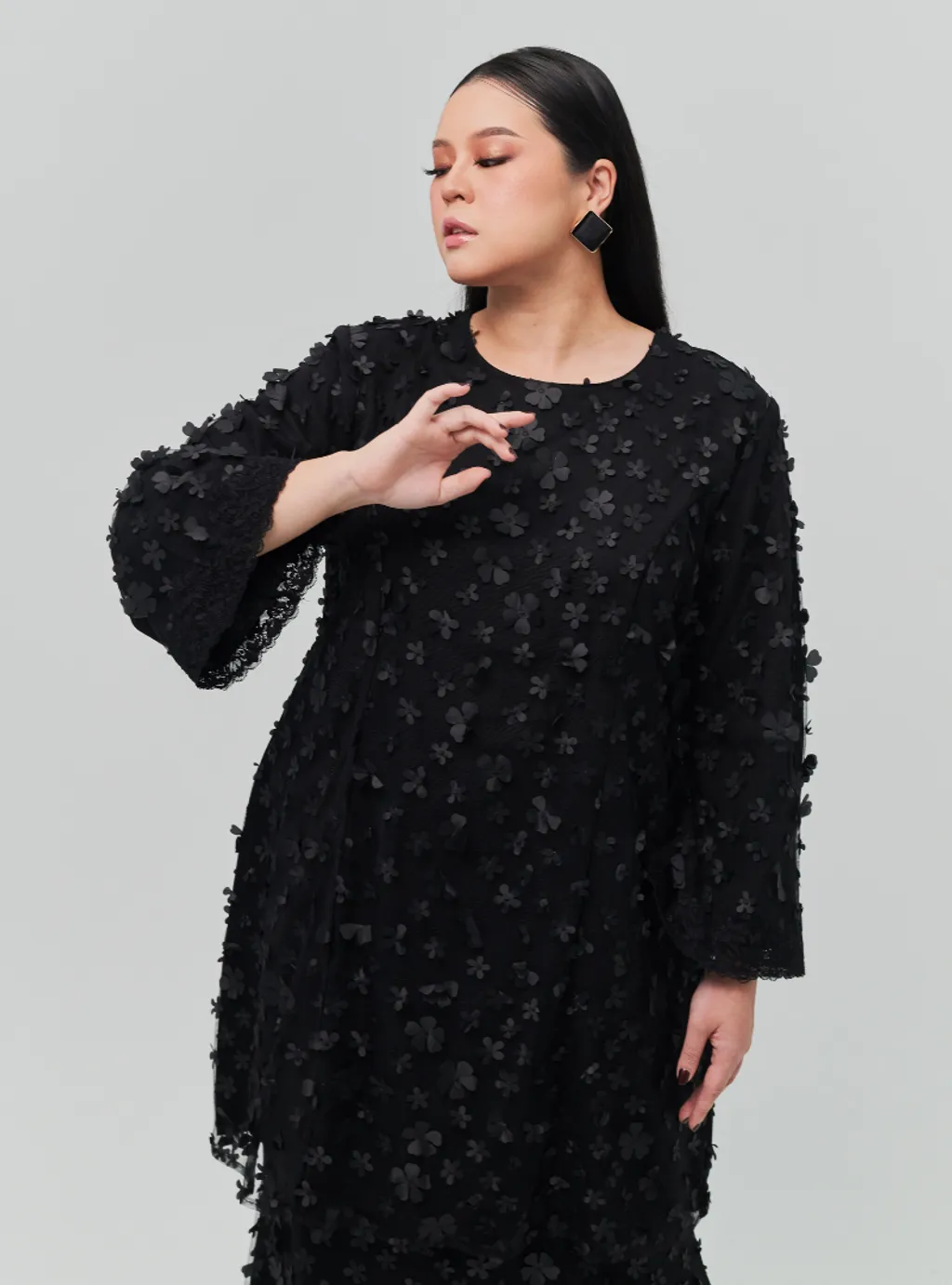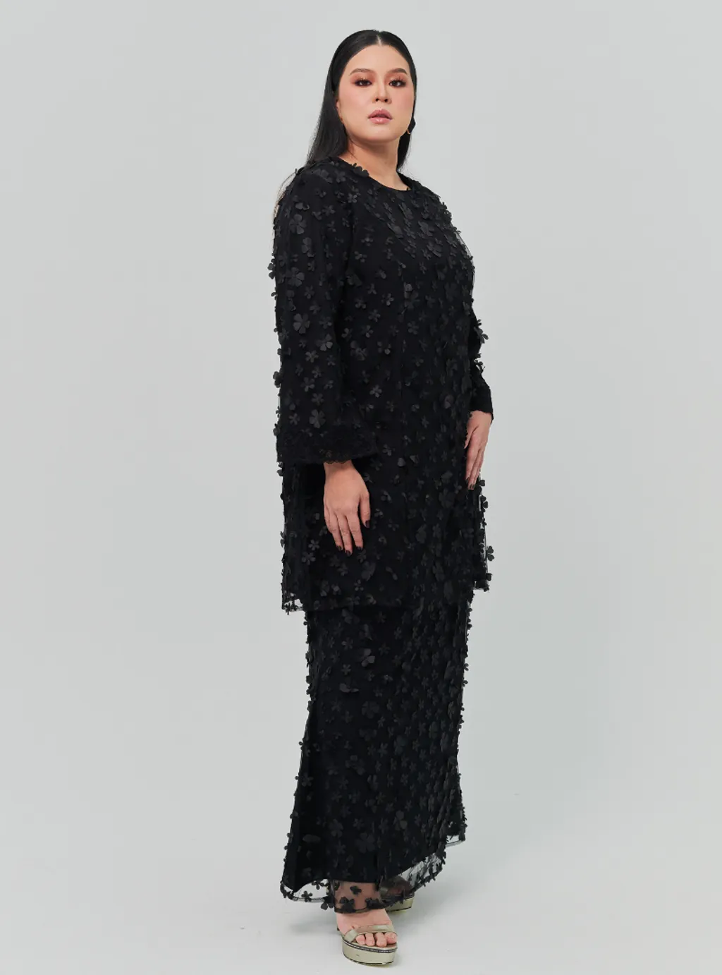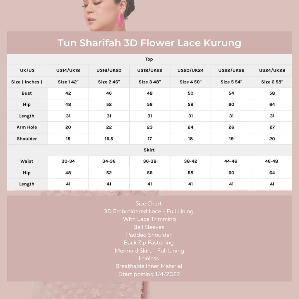 Setelan wanita big Tun Sharifah 3D Flower Lace Kurung