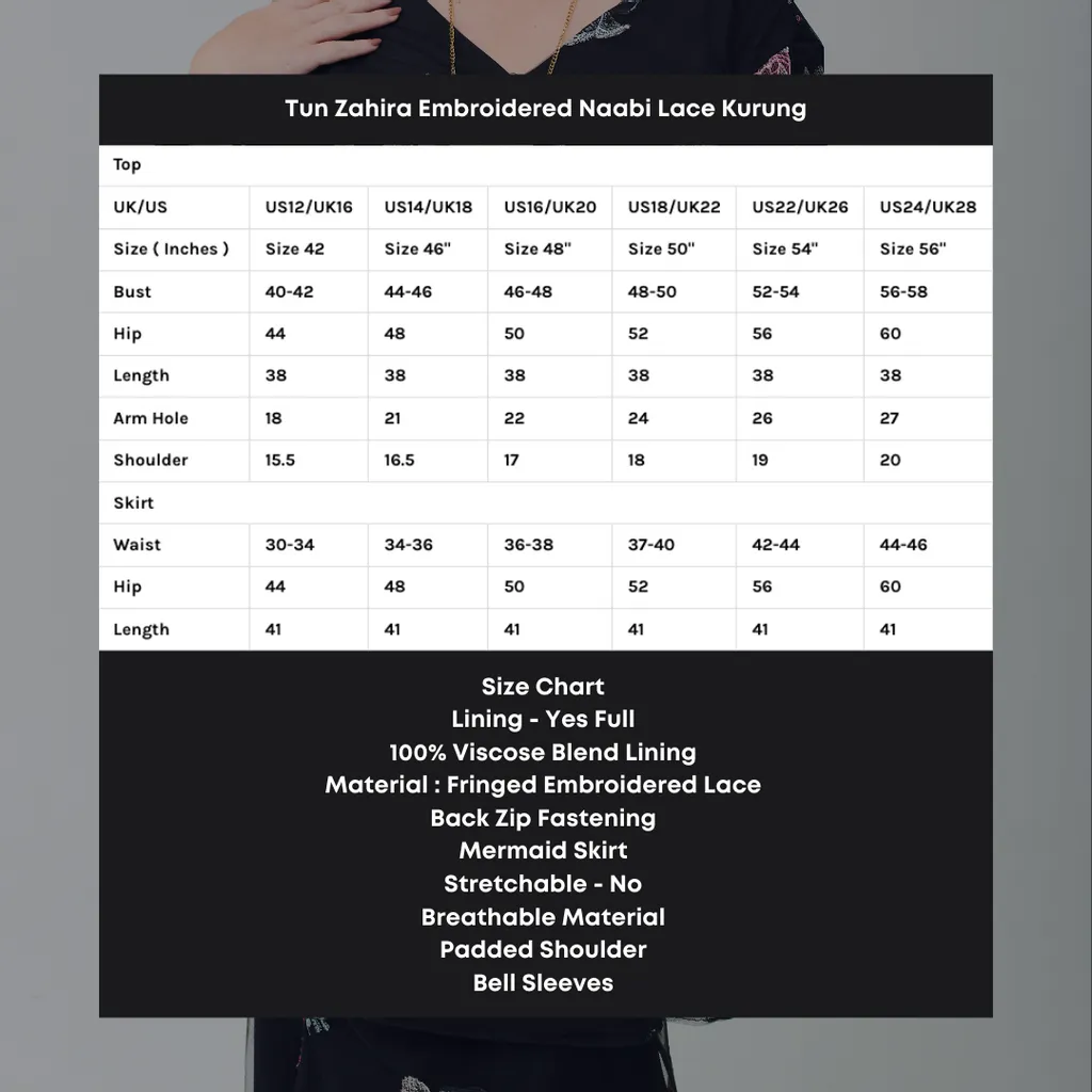 Setelan wanita big size Tun Zahira Embroidered Naabi Lace Kurung